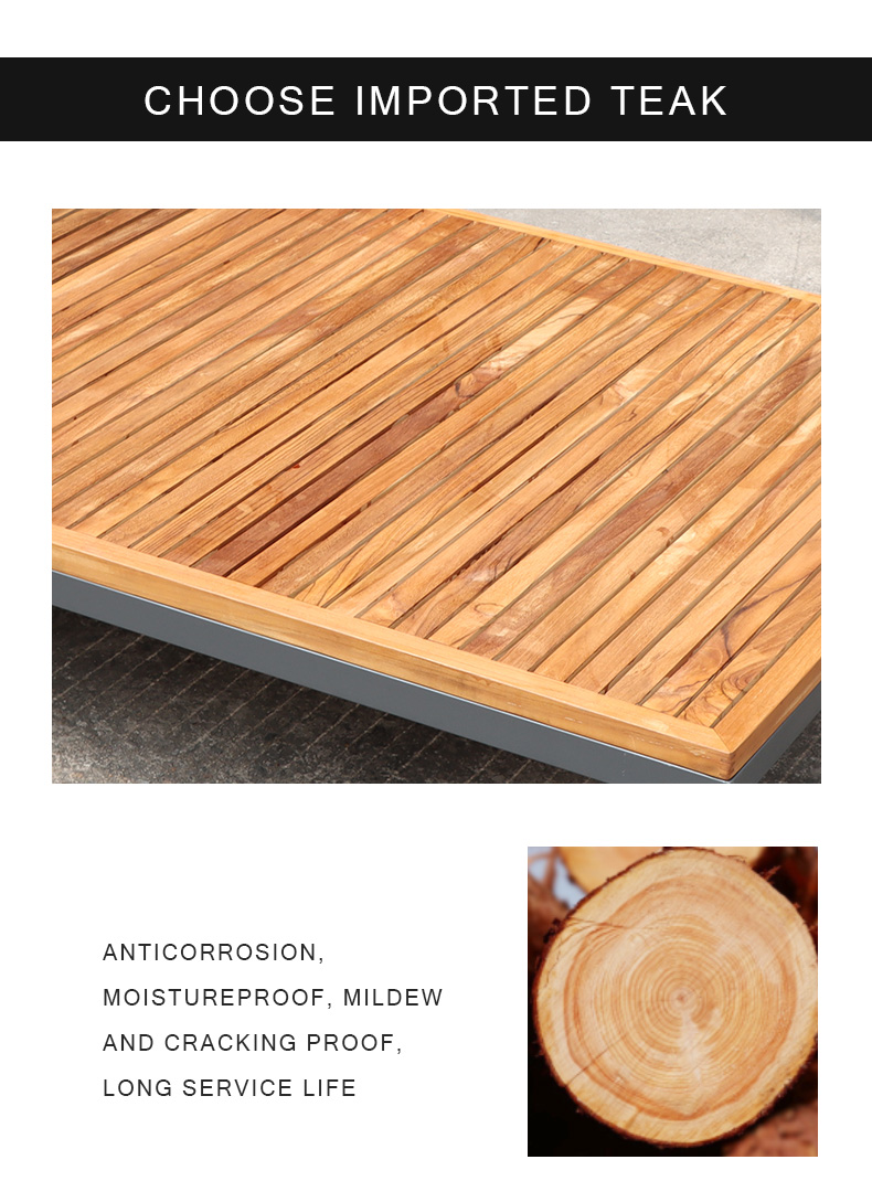 Enjoy this combination sofa on your terrace today. This set is made of teak frame, which is strong and beautiful. The added design makes the suit more special and adds a bit of talent. Thick cushions also help provide additional comfort in place. The waterproof fabric used for the cushion also helps to provide an easy to clean surface for all small sundries in life, ensuring that you can use your outdoor furniture in the next few years.